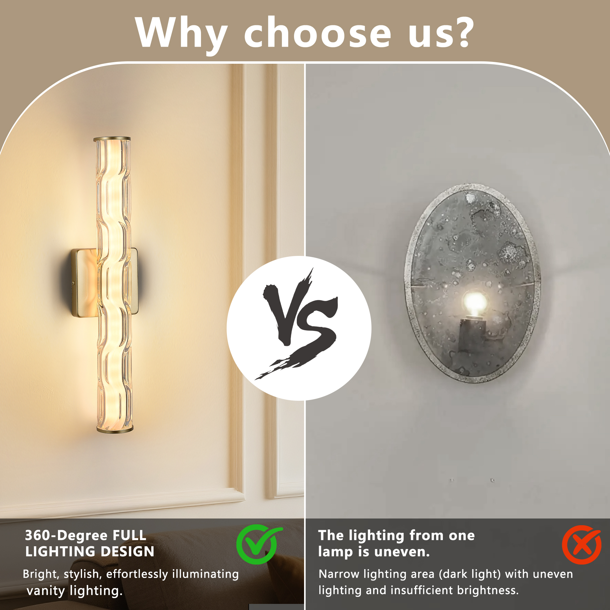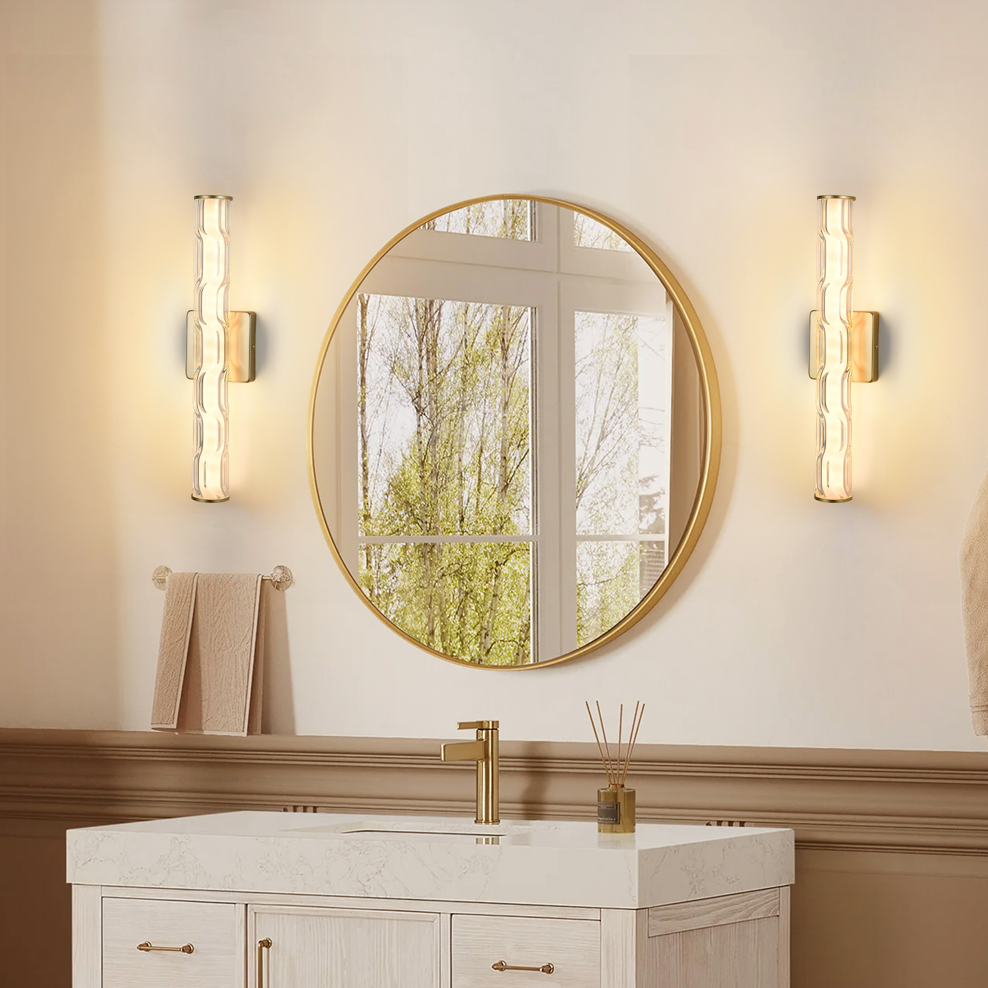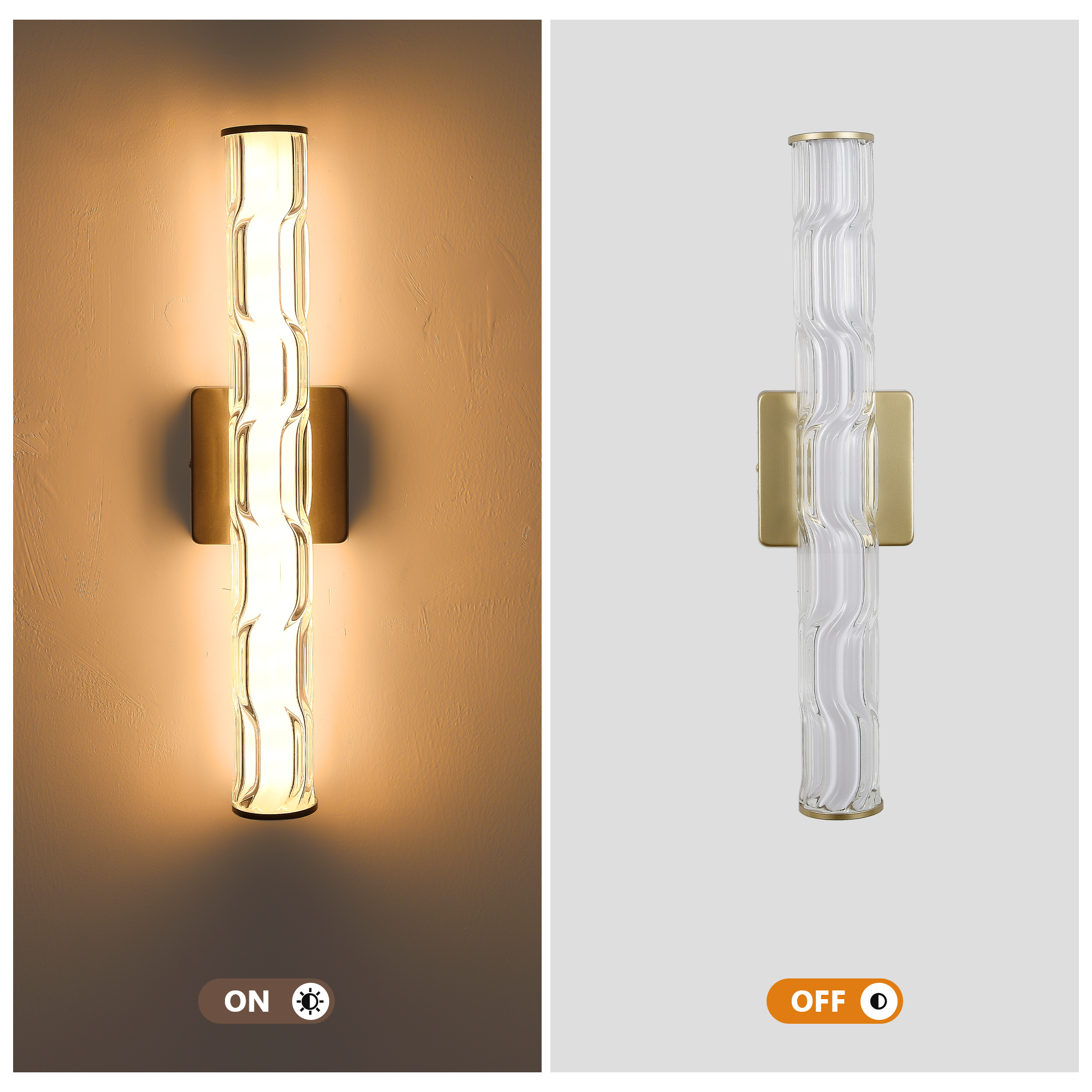 【Modern Crystal Wall Lamp】 This bathroom golden wall lamp is made with upgraded K9 crystal. It captures the essence of Italian minimalism from the 1960s, with carefully hand-polished K9 crystal prisms set on a pure gold frame. The hollow lamp arms can project light to the desired areas. This crystal wall lamp is both elegant and restrained, with slender LED lights penetrating the texture of the glass contour and emitting a soft, candle-like warmth. [High-quality Wall Lamp] This living room wall lamp is made of high-quality iron and can effectively prevent rust and moisture damage, making it suitable for long-term use in bathrooms and other places. It is processed with surface high-temperature baking paint, which is not prone to oxidation or scratching. Our crystal wall lamps perfectly blend retro and modern elements. [Easy Installation] This dining room wall lamp comes with all installation accessories and installation instructions. Just follow the provided icon instructions for assembly and installation. This modern crystal wall lamp uses hard wire connection and complies with American wiring standards box. This modern crystal wall lamp can achieve stepless dimming from 0% to 100% through the dimming switch (not included). [The Perfect Choice for Home Decoration] This modern crystal wall lamp is 19.7 inches (height) * 3.5 inches (length) * 4.7 inches (width) in size. It has a fashionable appearance and also serves as a lighting function. This indoor wall lamp is suitable for installation in bathrooms, mirrors, bedrooms, living rooms, dressing tables, cabinets, doorways or entrances, corridors, halls, stairwells or bars and cafes, etc. No matter your interior decoration style is modern, luxurious or elegant, this wall lamp will be an excellent addition!