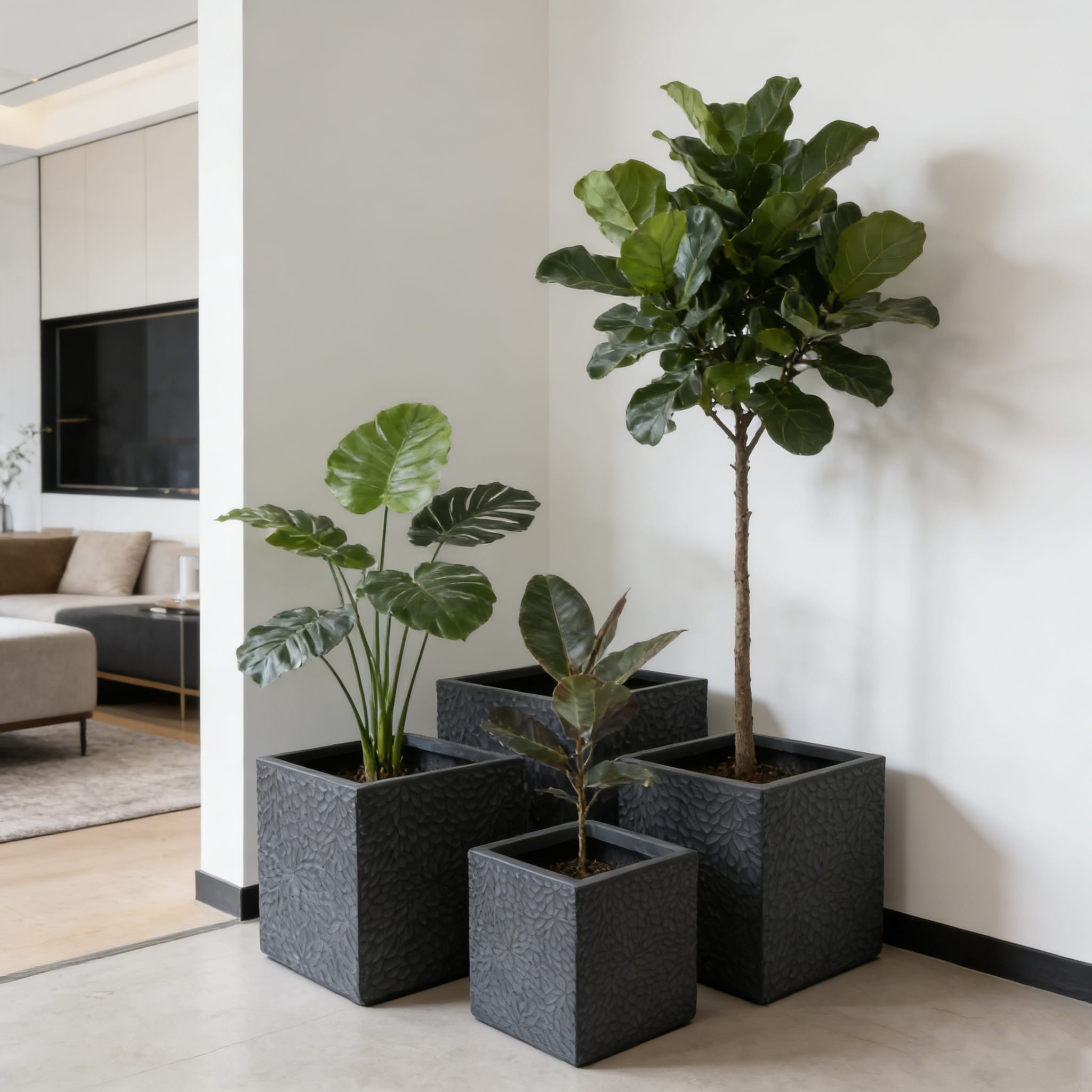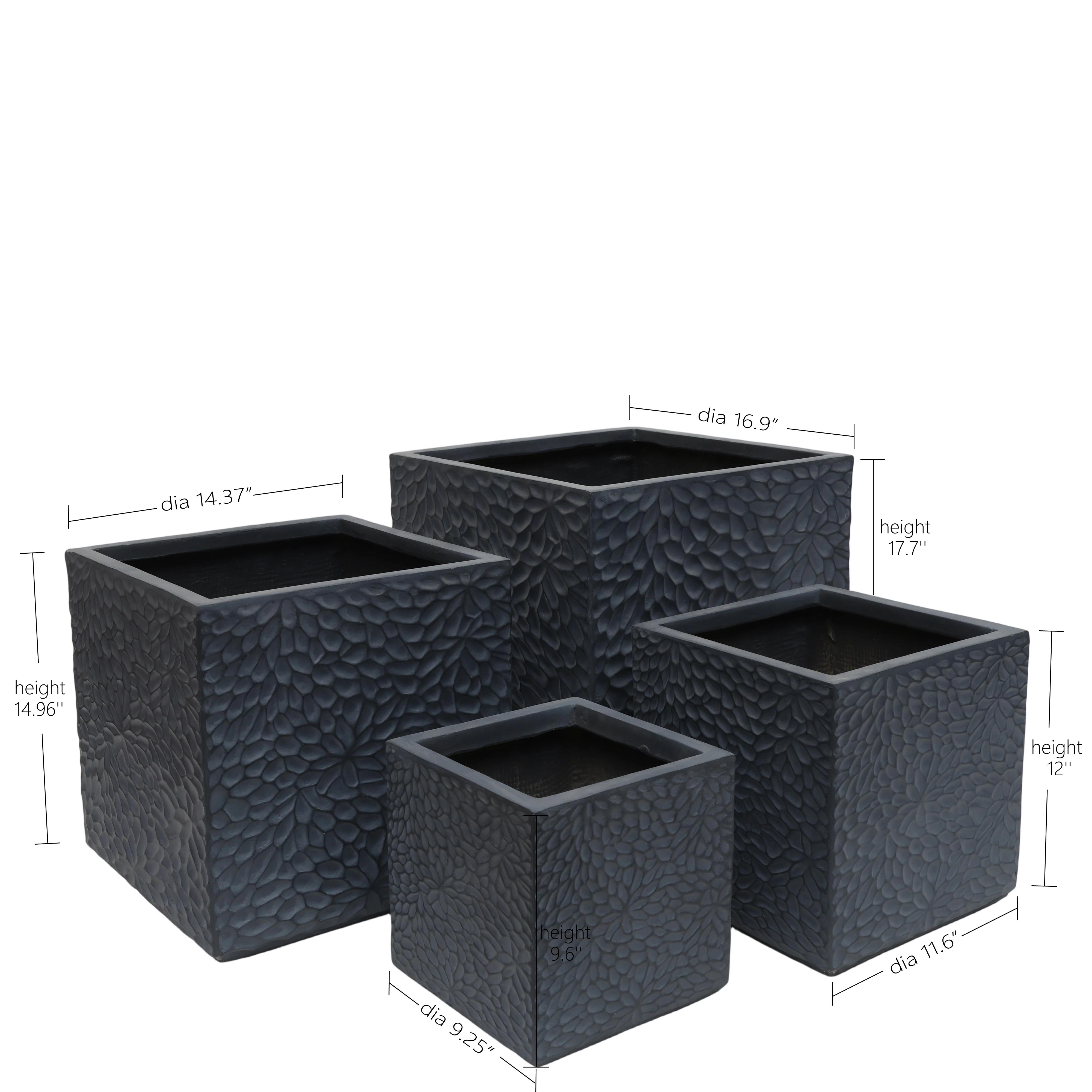 Product Name:Large Outdoor Indoor Planter, 16.9″+14.37″+11.6″ +9.25”Dia Square Magnesium Oxide Planter Set of 4, Flower Pots with Drainage Holes, Modern Design, Grey Color Planter for Home Garden Patio